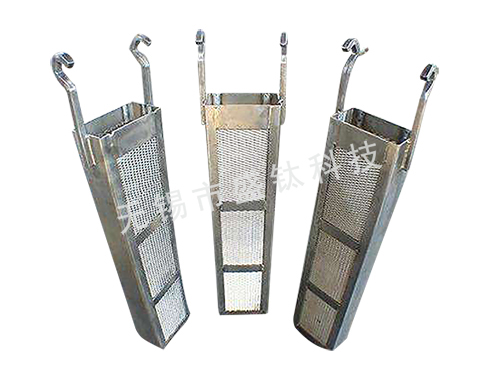 使用鈦籃應注意:鈦籃口應略高于液面,以免陽極渣流。鈦籃下端應高于零件100~150mm,以避免下端零件電流過于集中,引起燒焦。鈦籃與陽極應緊密接觸,否則鈦藍上的陽極電位將急劇升高,使鈦籃表面發生析氧和析氯反應,引起鈦網籃損壞和添加劑的氧化。